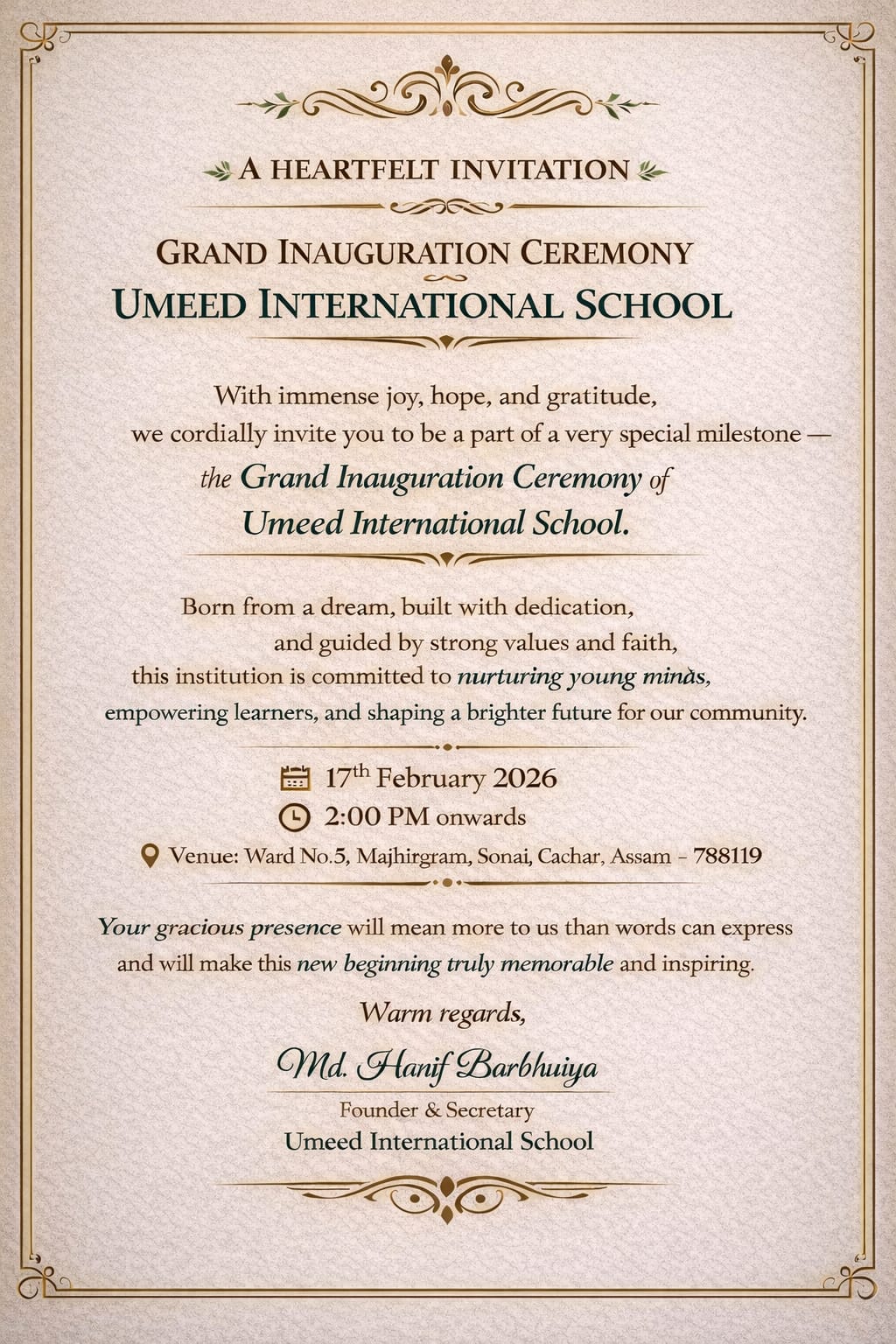 Invitation For Grand Inauguration Ceremony